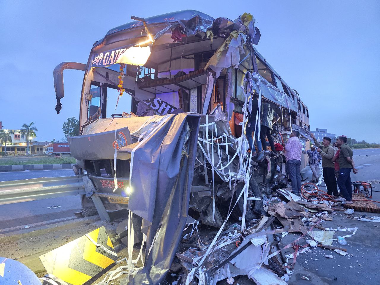 जानकारी के अनुसार महाराष्ट्र के मुंबई स्थित बोरीवली से यात्रियों को लेकर बस राजस्थान के उदयपुर जा रही थी। सोमवार सुबह करीब 4 बजे अहमदाबाद-उदयपुर राष्ट्रीय राजमार्ग नं. 48 पर काटवाड ओवरब्रिज के पास आगे चल रहे ट्रक में बस घुस गई।