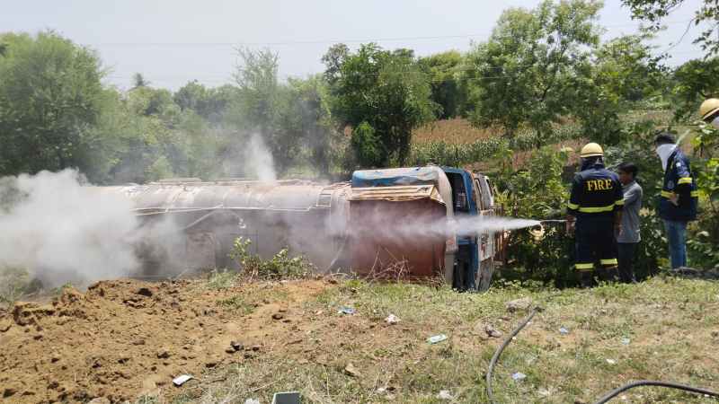 शनिवार दोपहर करीब 12 बजे दहेज से अहमदाबाद की ओर हाइड्रोजन पेरोक्साइड केमिकल लेकर जा रहे टैंकर के चालक ने नियंत्रण खो दिया और रेलिंग तोड़कर टैंकर गड्ढे में गिर कर पलट गया। टैंकर से केमिकल का रिसाव होने से अफरा-तफरी मच गई।