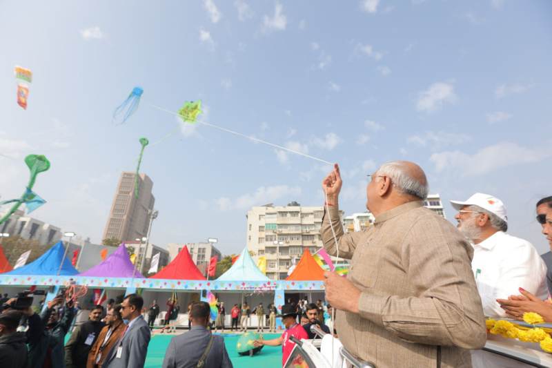 विदेशी पतंगबाजों के साथ सीएम ने उड़ाई पतंगमुख्यमंत्री भूपेंद्र पटेल ने खुद भी रिवरफ्रंट पर पतंग उड़ाई। महोत्सव के तहत आयोजित पतंग प्रतियोगिता में 55 देशों के 153 पतंगबाज हिस्सा ले रहे हैं। 12 राज्यों के 68 पतंगबाज और गुजरात के 23 शहरों के 865 पतंगबाज इसमें शामिल हैं।