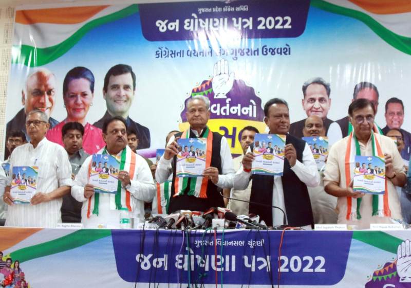 गुजरात चुनाव के लिए कांग्रेस के वरिष्ठ पर्यवेक्षक व राजस्थान के मुख्यमंत्री अशोक गहलोत ने कहा कि इसमें कांग्रेस नेता राहुल गांधी के ८ वचन के साथ-साथ जनता से अन्य कई वादे किए गए हैं।