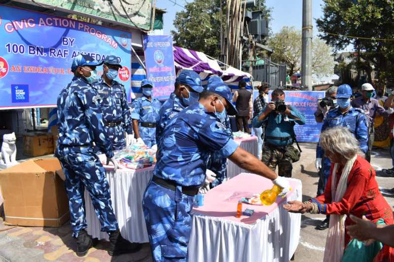 श्शनिवार को ही वस्राल स्थित 100 बटालियन द्रुत कार्य बल ने अहमदाबाद के शाहपुर इलाके में नागोरीवाड पुलिस के निकट कोविड - 19 से बचने के लिए इस्तेमाल होने वाले दस्ताने, सेनेटाइजर एवं मास्क जैसी सामग्री बांटी। कोरोना वायरस के संक्रमण से निपटने के लिए केन्द्रीय रिजर्व पुलिस बल (सीआरपीएफ) की ओर से भी कई जगह पर सिविक एक्शन कार्यक्रम चलाए जा रहे है ।
