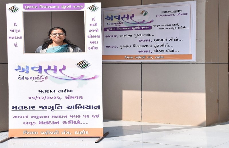 दाहोद. गुजरात विधानसभा चुनाव के दूसरे चरण में दाहोद जिले में 5 दिसंबर को होने वाले मतदान के लिए जागरुकता को लेकर कियोस्क, सेल्फी प्वाइंट, हस्ताक्षर अभियान शुरू किए गए हैं।