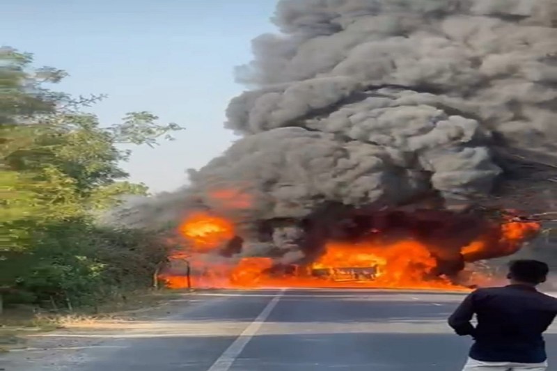 इसके साथ ही तेज धमाके की आवाज के साथ आग लग गई। देखते ही देखते तीनों ट्रक आग की लपटों से घिर गए। हादसे में बीच में तेल के पाऊच भरे ट्रक के चालक की झुलसने से मौत हो गई। अन्य दोनों ट्रकों के चालक सहित तीन लोग कूदने के कारण बच गए। तीनों ने दौड़कर पास के खेतों में आश्रय लिया।