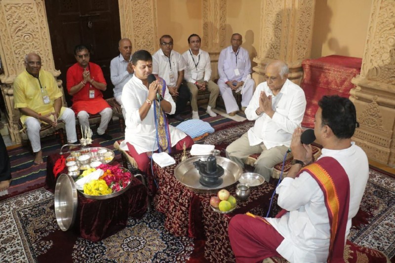 सोमनाथ मंदिर में पूजन करते मुख्यमंत्री भूपेंद्र पटेल।