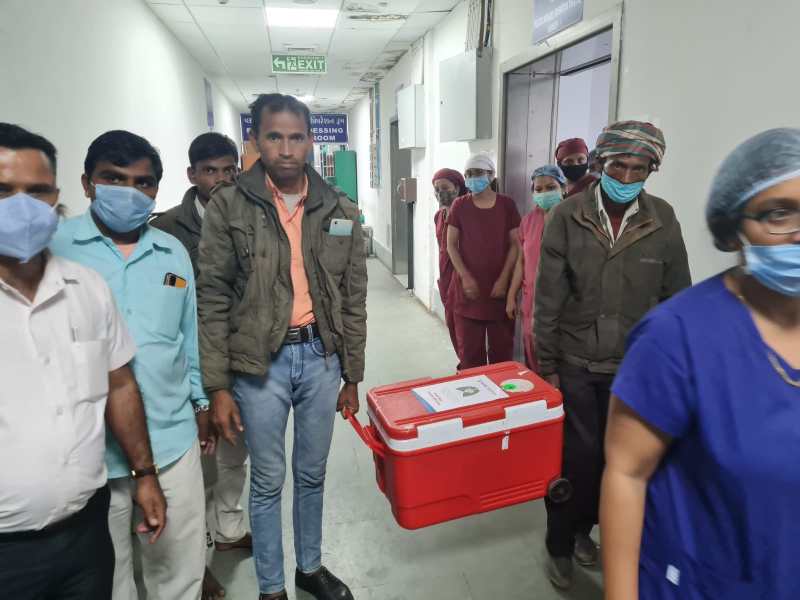 डूंगरपुर की वसुबेन कलासुआ गत 21 नवम्बर को एक दुर्घटना में गंभीर रूप से घायल हुईं थीं। उस दौरान उपचार के लिए उन्हें डूंगरपुर प्राथमिक स्वास्थ्य केन्द्र और उसके बाद हिम्मतनगर ले जाया गया। स्थिति में सुधार नहीं होने पर उन्हें गहन उपचार के लिए अहमदाबाद के सिविल अस्पताल में लाया गया। यहां मंगलवार को उन्हें ब्रेन डेड घोषित कर दिया गया। अस्पताल में मौजूद स्टेट ऑर्गन टिशु ट्रान्सप्लान्ट ऑर्गेनाइजेशन (सोटो) की टीम ने वसुबेन की स्थिति और अंग दान के संबंध में उनके परिजनों को अवगत कराया। परिजनों ने इसके लिए स्वीकृति दे दी, जिससे वसुबेन की दो किडनी, लीवर और फेफड़ों का दान किया गया। इनमें से फेफड़ों को जरूरत के आधार पर हैदराबाद में उपचाराधीन एक मरीज के प्रत्यारोपण के लिए भेजा गया। इसके लिए अहमदाबाद के सिविल अस्पताल से एयरपोर्ट तक ग्रीन कॉरिडोर किया गया, जहां से चार्टर्ड फ्लाइट से फेफड़ों को हैदराबाद ले जाया गया। वसुबेन के अन्य अंग लीवर और दो किडनी का भी ट्रान्सप्लान्ट किया गया।