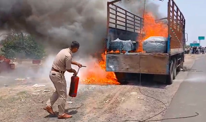 मिनी ट्रक से धुआं निकलता देख चालक ने मिनी ट्रक को सड़क के किनारे रोक दिया और ट्रक से बाहर निकलकर सुरक्षित स्थान पर चला गया।
