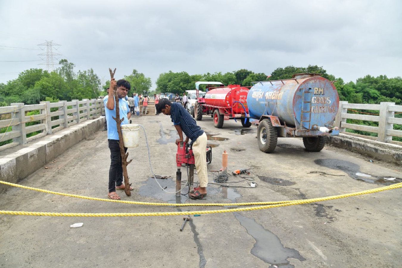 पुल का जो हिस्सा टूटकर नदी में गिर गया, उसे गिराने का काम शुरू किया गया। इसके लिए 20 हॉर्स पावर की डायमंड वायर कटिंग मशीन मंगवाई गई। इसे नाव में डालकर पुल से नीचे उतारा गया। इस मशीन को चलाने के लिए एक जनरेटर लाया गया।