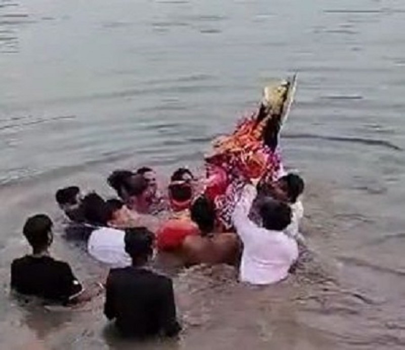 जानकारी के मुताबिक, गुंदासरा गांव की एक फैक्ट्री में सोमवार को बसंत पंचमी पर प्रवासी श्रमिकों की ओर से माता सरस्वती की मूर्ति की स्थापना की गई। सोमवार देर शाम करीब 12 से 15 लोग मूर्ति लेकर गांव के पास बने चेक डैम पर पहुंचे।