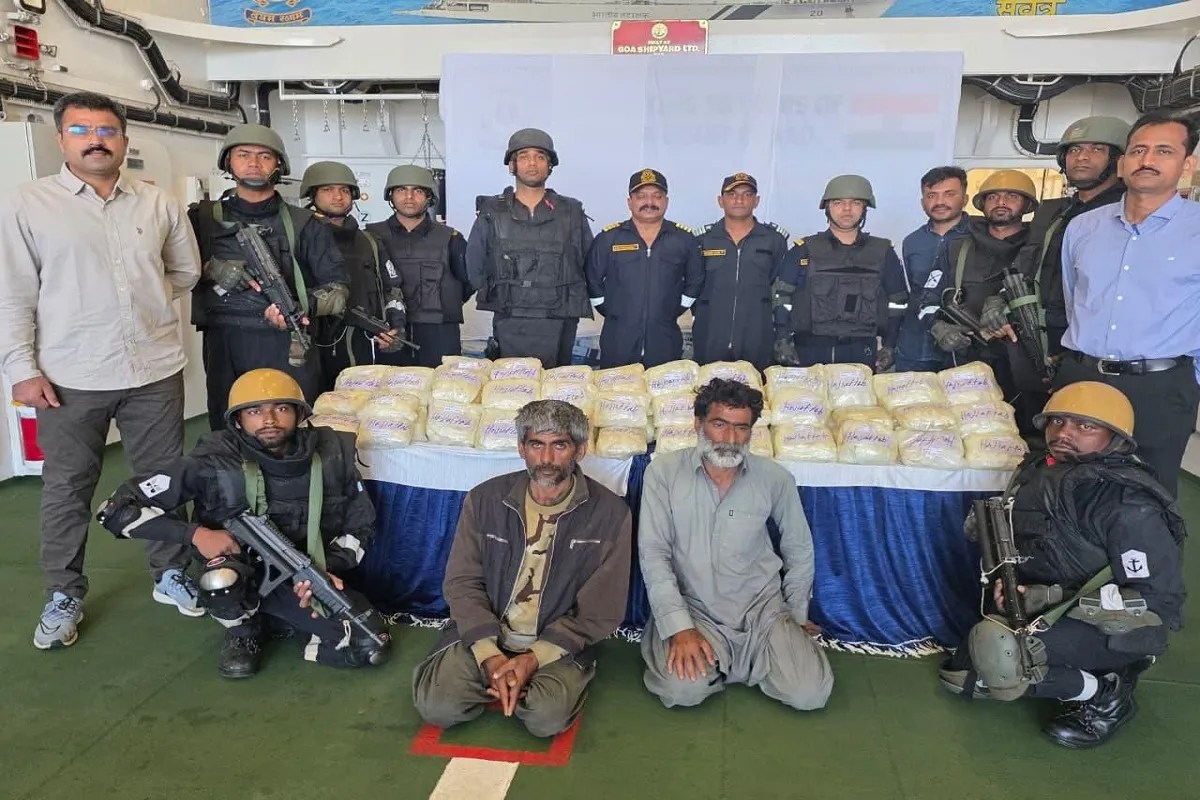 गुजरात एटीएस एवं कोस्ट गार्ड की गिरफ्त में शंकास्पद ड्रग्स के साथ पकड़े गए आरोपी।