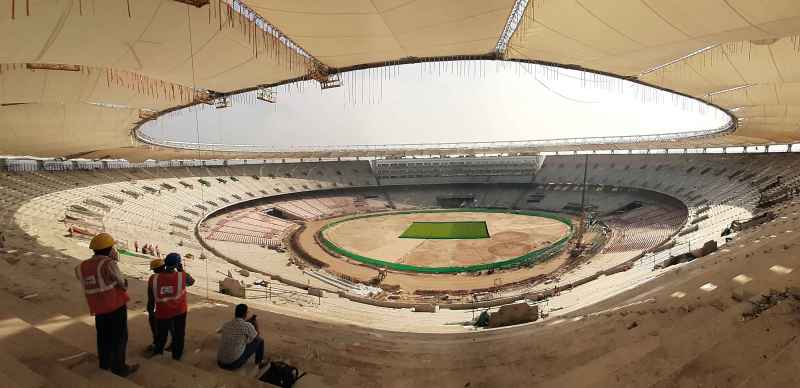 मोटेरा स्टेडियम पर इन दिनों काम पूरी तेजी से चल रहा है। 63 एकड़ क्षेत्र में फैले इस स्टेडियम में सिविल कार्य लगभग पूरा हो चुका है। गुजरात क्रिकेट एसोसिएशन (जीसीए) के उपाध्यक्ष परिमल नथवाणी के मुताबिक स्टेडियम का 90 फीसदी काम पूरा हो चुका है। उन्होंने आशा जताई कि वर्ष 2020 के पहले कुछ महीनों में स्टेडियम मैच के लिए तैयार हो जाएगा।