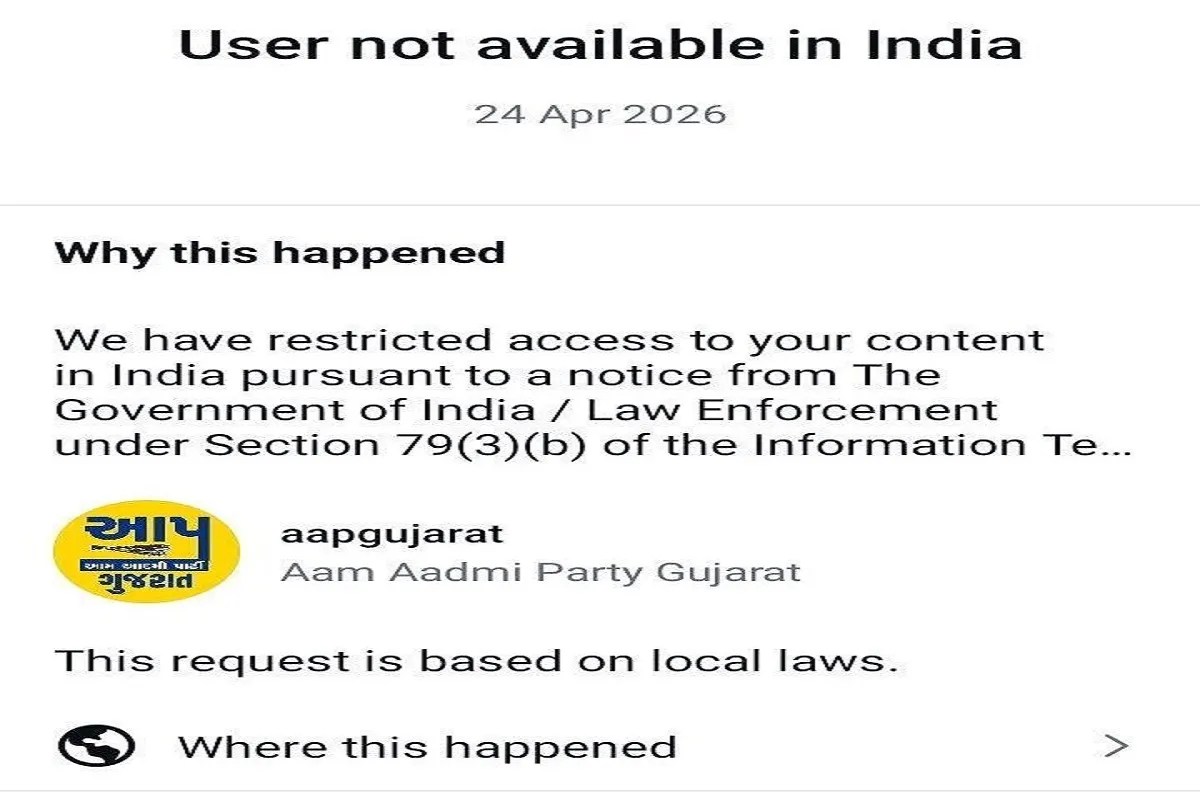 आम आदमी पार्टी गुजरात का सोशल मीडिया अकाउंट सस्पेंड।