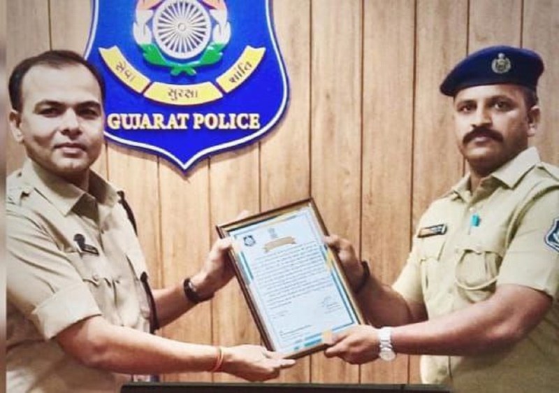राजकोट. जिले के जेतपुर उद्योगनगर पुलिस स्टेशन के हेड कांस्टेबल रिजवान सिंजात का जिला पुलिस अधीक्षक हिमकर सिंह ने प्रशस्ति पत्र भेंटकर सम्मान किया।
