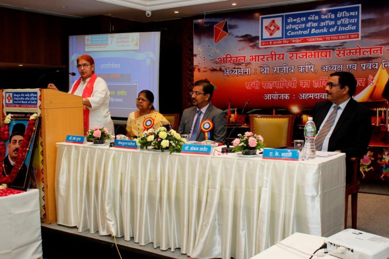 बैंक के अहमदाबाद अंचल के फील्ड महाप्रबंधक अशोक कुमार भारती के नेतृत्व में आयोजित सम्मेलन में मुख्य अतिथि हिंदी साहित्यकार अंजना संधीर ने बताया कि हिंदी में सभी भारतीय भाषाओं को समाहित करने का अभिन्न गुण है और आज भारत ही नहीं बल्कि विश्व के कई देशों में हिंदी जानने-समझने के प्रति जागरूकता बढ़ी है।