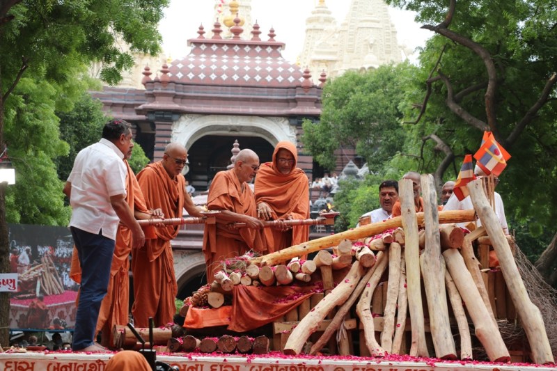राजकोट के शास्त्री कौशिक त्रिवेदी सहित पांच पंडितों ने तीर्थ जल व गुलाब-केसर जल से अभिषेक के साथ अंत्येष्टि संस्कार कराया। भगवान स्वामीनारायण व विष्णु भगवान के प्रतिनिधि के तौर पर शालिगराम की पूजा करवाकर समग्र यजुर्वेद संहिता के पुरुषसूक्त के अनुसार दिवंगत संत के अंतिम संस्कार की विधि करवाई। अंतिम संस्कार के लिए चंदन, केर, पीपल, तुलसी व नीम आदि की लकडिय़ों का उपयोग किया गया। संतों ने दिवंगत स्वामी की पार्थिव देह को चरणकमल से अग्नि स्पर्श करवाकर चिता प्रज्वलित की। इससे पहले, शास्त्रोक्त विधि से अभिषेक पूरा करने के बाद पार्थिव देह को विशेष पालखी में रखकर मंदिर की प्रदक्षिणा कराई गई। बाद में लीमडा वन में पहुंचाया गया। मोगरी के अनुपम मिशन के यशभाई और देश-विदेश के संतों-भक्तों ने अंतिम दर्शन कर दिवंगत संत को भावांजलि अर्पित की। एलईडी स्क्रीन के जरिए अंतिम संस्कार विधि का प्रसारण कराया गया।