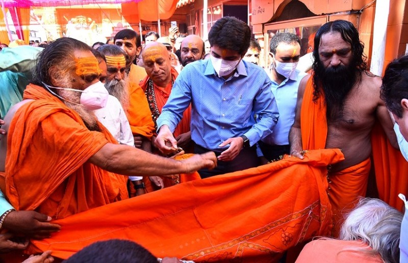 जूनागढ़ के भवनाथ महादेव मंदिर में महाशिवरात्रि के मेले के उद्घाटन से पहले ध्वजा की पूजा करते साधु-संत व अधिकारी। फोटो : हरेश सोनी