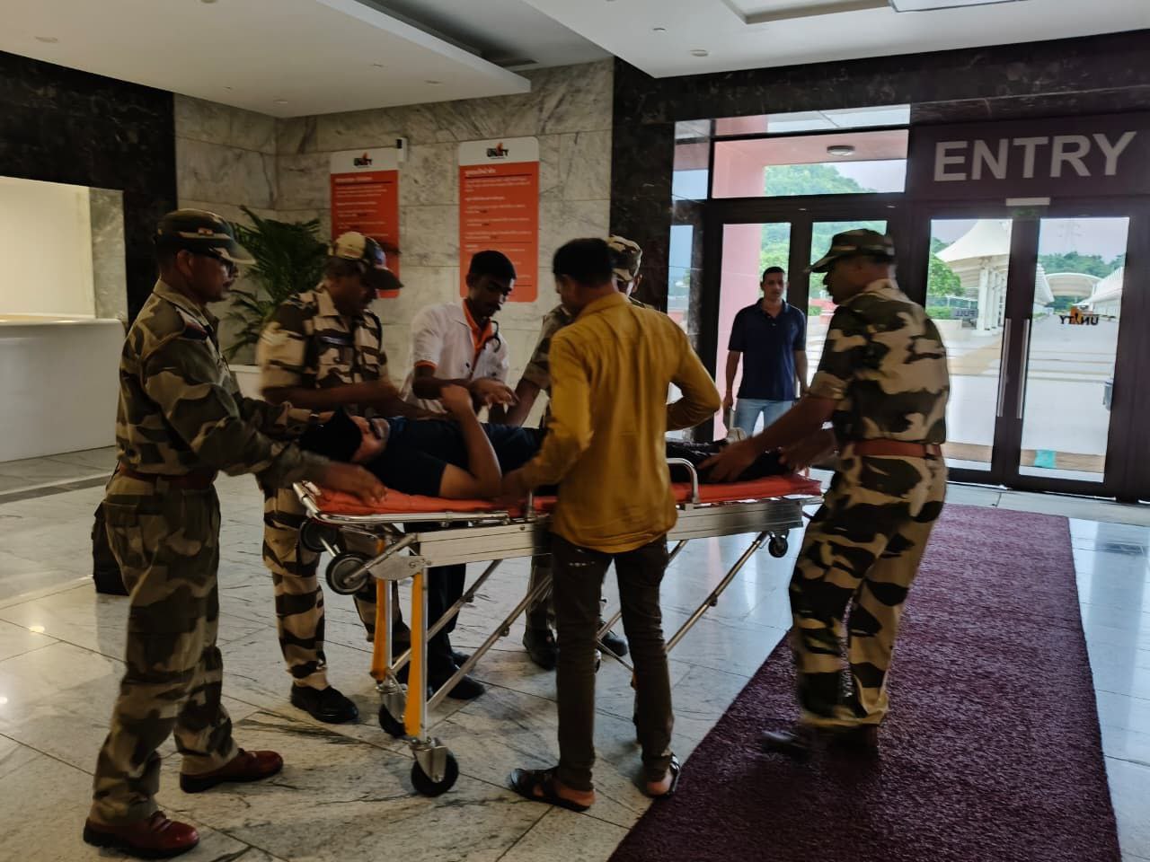सीआईएसएफ के जवानों के वार्षिक आपदा-नियंत्रण रिहर्सल के तहत परिदृश्य के अनुसार स्टैच्यू ऑफ यूनिटी पर चार आतंकवादियों ने प्रवेश द्वार से हमला कर एक जवान को शहीद तथा एक को घायल किया।
