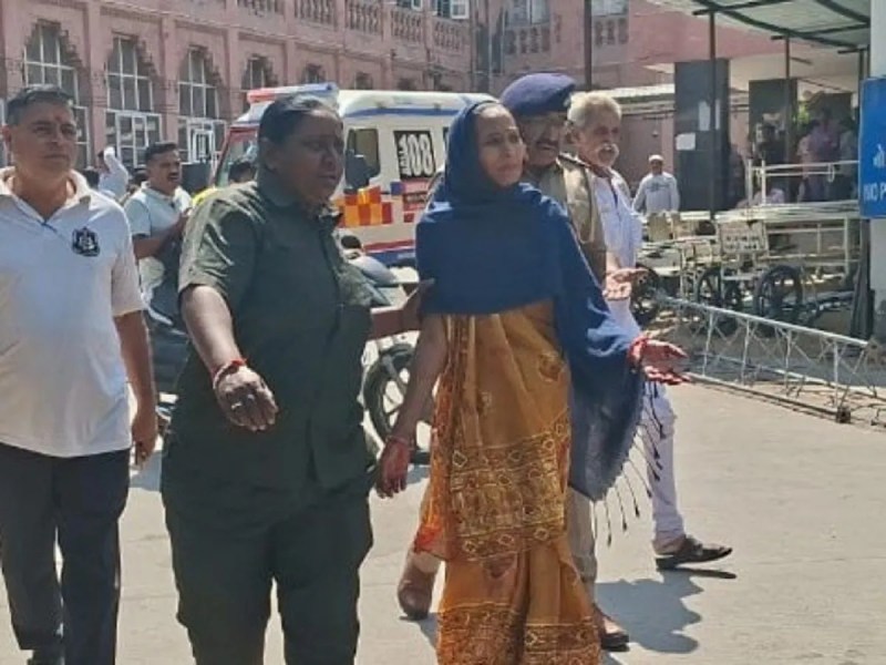 पुलिस की गिरफ्त में मृतक की पत्नी मीना राठौड़।