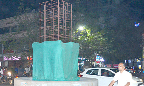 राजकोट. शहर में नाना मवा रोड स्थित राजनगर चौक ट्रैफिक सर्कल पर 6 नग्न पुरुषों की प्रतिमा लगाने पर हंगामे के बीच महिलाओं के विरोध के बाद इन प्रतिमाओं पर मंगलवार को पर्दे ढंक दिए गए।