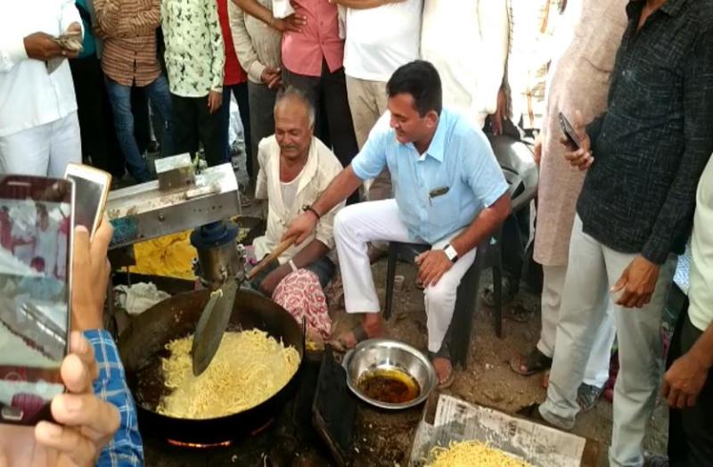 अहमदाबाद. गुजरात विधानसभा में नेता प्रतिपक्ष परेश धानाणी हमेशा आमजन के बीच बने रहने को कुछ न कुछ तरीके आजमाते नजर आते हैं। कभी चाय बनाते तो कभी भजिया तलते नजर आते हैं तो बुधवार को अमरेली में अपने विधानसभा क्षेत्र की धारी तहसील के माणवेल गांव में श्री राम मंदिर के प्रतिष्ठा महोत्सव में पहुंचे और दर्शन किए। बाद में वे रसोई में पहुंचे जहां उन्होंन गांठिया तलते नजर आए। वे ग्रामीणों के लिए आकर्षण का केन्द्र बने रहे।