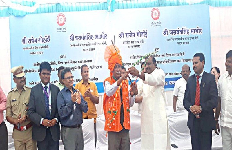 केंद्रीय जनजातीय कार्य राज्यमंत्री जसवंतसिंह भाभोर ने केंद्रीय रेल राज्यमंत्री राजेन गोहेन को साफा पहनाकर व धनुष बाण प्रदान कर पारम्परिक तरीके से स्वागत किया। रतलाम के मंडल रेल प्रबंधक आर.एन. सुनकर तथा पश्चिम रेलवे के वरिष्ठ अधिकारियों सहित बड़ी संख्या में लोग उपस्थित थे। पश्चिम रेलवे के अपर महाप्रबंधक राहुल जैन ने प्रारंभ में अतिथियों का स्वागत किया। पश्चिम रेलवे में भाप के इंजनों की पीओएच के लिए वर्ष 1931 में सबसे पुराना वर्कशॉप दाहोद में स्थापित किया गया। दाहोद वर्कशॉप के मुख्य कारखाना प्रबंधक एन.डी. शाक्यवार ने आभार व्यक्त किया। पश्चिम रेलवे मुख्यालय के जनसम्पर्क अधिकारी नितिन कुमार डेविड ने संचालन किया।