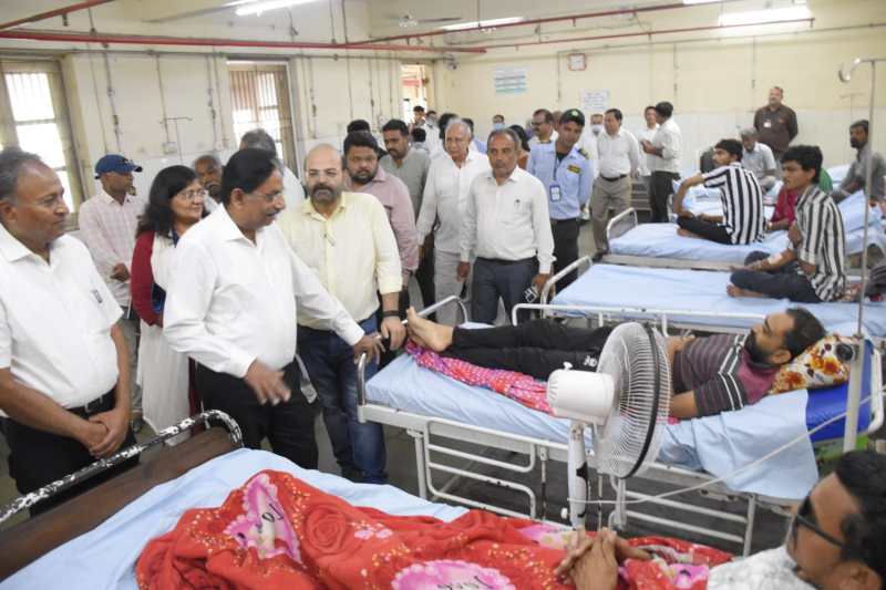 पोरबंदर सिविल अस्पताल में मंत्री ऋषिकेश पटेल व अन्य।