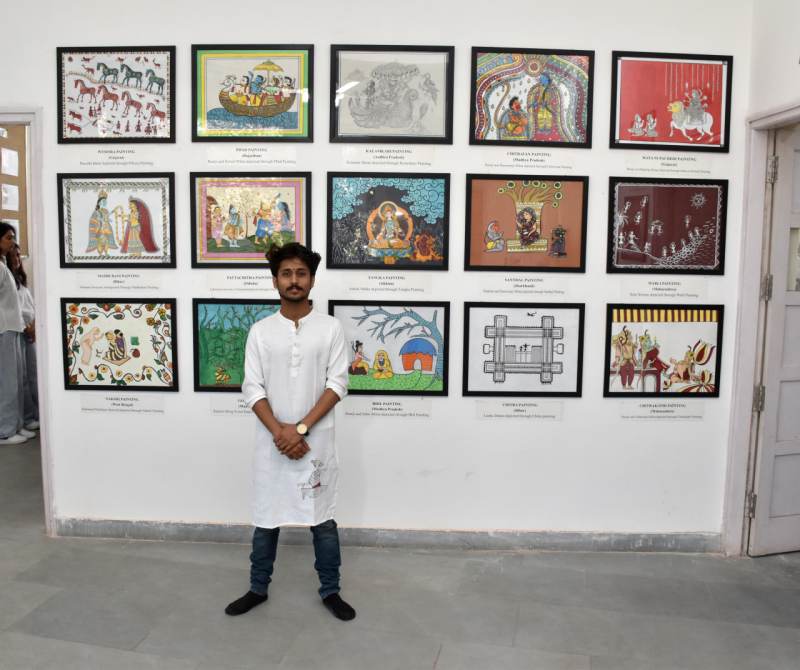 छात्र ने पश्चिम बंगाल की कालीघाट पेंटिंग से रावणवध का वर्णन किया है। तेलंगाना की चेरियाल स्क्रॉल पेंटिंग से लक्ष्मण की जान बचाने के लिए हनुमान की ओर से संजीवनी बूटी लाने के घटनाक्रम को दर्शाया है। महाराष्ट्र की चित्रकाठी पेंटिंग के माध्यम से राम और विभीषण मिलन का चित्रण किया है।