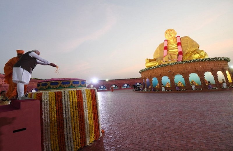 महंतस्वामी महाराज और पीएम नरेंद्र मोदी नगर के मध्य स्थित 'प्रमुख वंदना स्थल' पहुंचे, जहां प्रधानमंत्री ने 15 फुट ऊंची पीठिका पर विराजमान प्रमुखस्वामी महाराज की 30 फुट ऊंची दिव्य प्रतिमा पर पुष्प द्वारा श्रद्धांजलि अर्पित की। यहां से वे 67 फीट ऊंचे अक्षरधाम मंदिर पहुंचे। मंदिर में भगवान स्वामिनारायण और संत परंपरा के अतिरिक्त भगवान सीता-राम, राधा-कृष्ण, शिव पार्वती के स्वरूपों की वंदना कर प्रदक्षिणा की। नगर में ज्योति उद्यान और बालनगरी की मुलाकात करके सभी सभा स्थल पर पहुंचे।