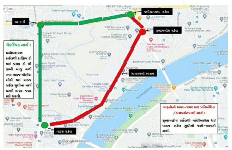 पद यात्रा जब पालडी चार रास्ते से एनआईडी सर्कल , सरदार ब्रिज, जमालपुर ब्रिज के नीचे तक के रोड से गुजरेगी तब तक वाहनों के लिए ये मार्ग और ब्रिज बंद रहेगा।
