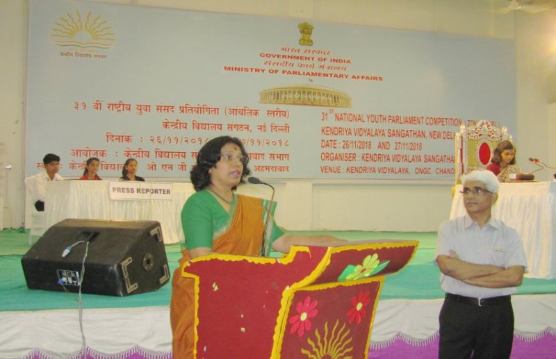 दो दिवसीय इस आंचलिक स्तरीय राष्ट्रीय युवा संसद प्रतियोगिता का शुभारंभ सोमवार को मुख्य अतिथि व पूर्व सांसद डॉ.अलका क्षत्रिय, भारत सरकार के उपसिचव ए.बी.आचार्य, ओएनजीसी के एैसेट मैनेजर व विद्यालय प्रबंधन समिति के अध्यक्ष देवाशीष वासु, केवी नई दिल्ली मुख्यालय के सहायक आयुक्त वरुण मित्रा, केवी अहमदाबाद के सहायक आयुक्त आर.एम.भाभोर, प्राचार्य डी.के.गुप्ता ने किया। इस प्रतियोगिता में आगरा, अहमदाबाद, मुंबई, रांची, जयपुर रीजन के २७५ विद्यार्थी शिरकत कर रहे हैं। हर रीजन से ५५ विद्यार्थी प्रतियोगिता में शिरकत कर रहे हैं।