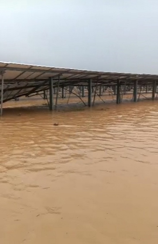 पाटण जिले की सांतलपुर तहसील के चारणका गांव में शनिवार को भारी बारिश के चलते सोलर पैनल डूब गए। सोलर पैनल की मशीन के ऑफिस में भी पानी भर गया।