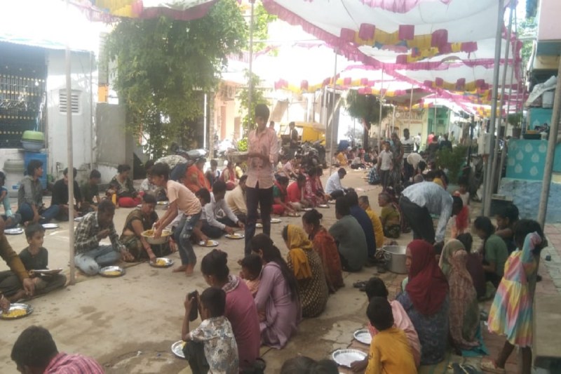 सरसपुर में भोजन करते लोग।