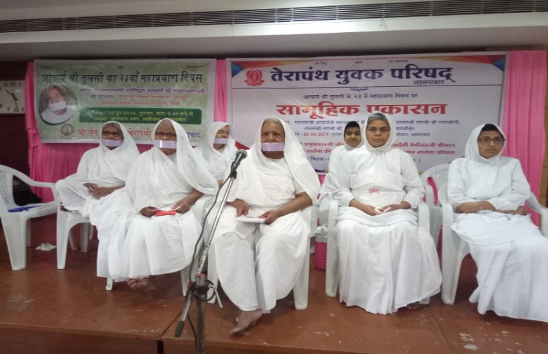 अहमदाबाद. जैन श्वेताम्बर तेरापंथी सभा की स्थानीय इकाई के तत्त्वावधान में तेरापंथ धर्मसंघ के नवमाधिशास्ता, अणुव्रत प्रवर्तक, गणाधिपति आचार्य तुलसी के 23वें महाप्रयाण दिवस का कार्यक्रम आचार्य महाश्रमण की शिष्या साध्वी रतनश्रीजी, साध्वी सत्यप्रभा एवं सहवर्ती साध्वियों के सान्निध्य में यहां शाहीबाग क्षेत्र स्थित ओसवाल भवन में गुरुवार को आयोजित किया गया।