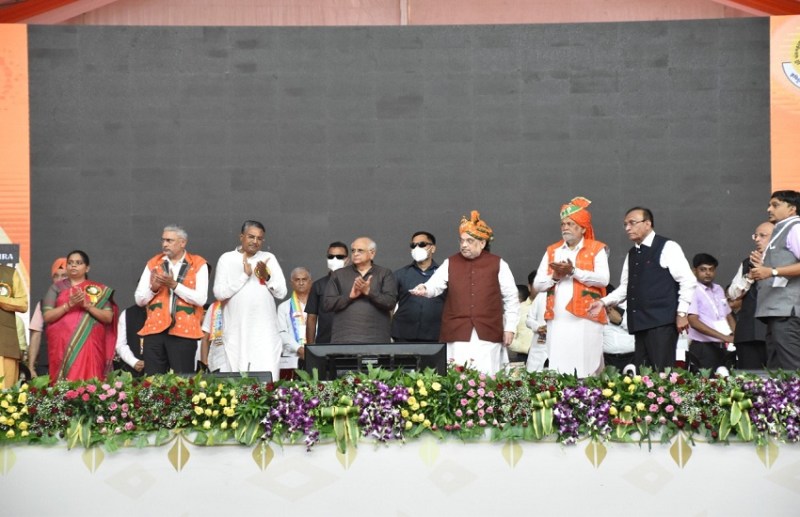 दाहोद. पंचमहाल जिले के गोधरा में पंचामृत डेयरी के विभिन्न विकास कार्यों का लोकार्पण व शिलान्यास करते केंद्रीय सहकारिता मंत्री अमित शाह। फोटो : संतोष जैन