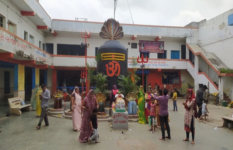 अहमदाबाद के रखियाल स्थित चकुडिया महादेव मंदिर में गुरुवार से आरंभ हो रहे गुजराती श्रावण माह की तैयारी करते हुए।
