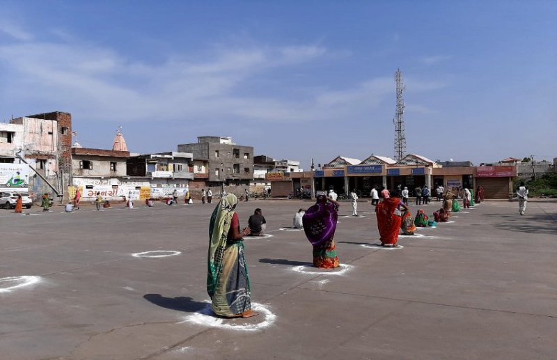 आणंद. जिले की तारापुर स्थित एक बैंक की शाखा में लोगों की भीड़ को ध्यान में रखकर लेन देन की व्यवस्था बस स्टेंड पर की गई है।