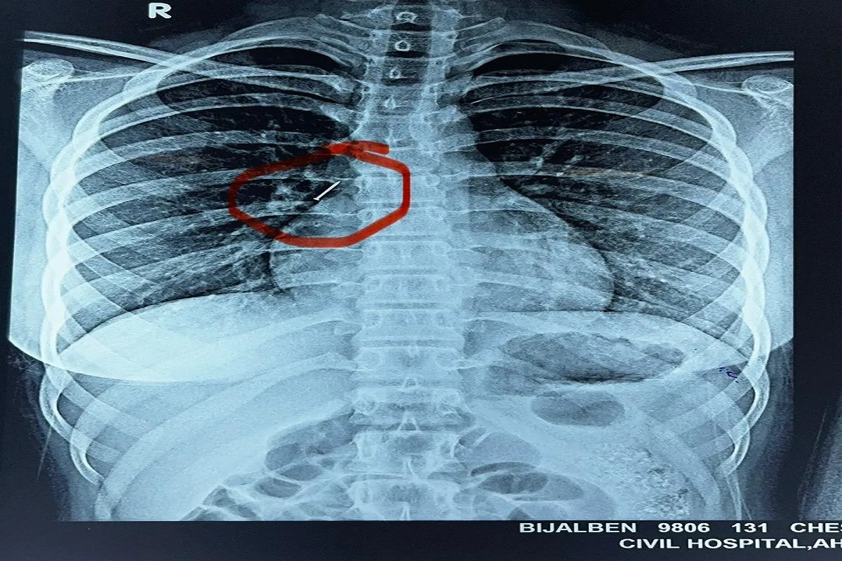 सांस लेने में हुई कठिनाई के चलते परिजनों ने पहले मोडासा और फिर हिम्मतनगर अस्पताल में भर्ती कराया, लेकिन स्थिति गंभीर होने पर उसे अहमदाबाद सिविल अस्पताल रेफर किया गया। जहां ईएनटी विभाग के डॉक्टरों ने मात्र दो मिनट में ब्रॉन्कोस्कोपी के माध्यम से पिन निकालकर बच्ची को नया जीवन दिया।फेफड़ों के बेहद पास पहुंच गई थी पिनसिविल अस्पताल के ईएनटी विभाग के प्रोफेसर डॉ. कल्पेश पटेल और उनकी टीम ने एक्स-रे रिपोर्ट में देखा कि नुकीली पिन फेफड़ों के बेहद पास श्वास नली में फंसी हुई है। एनेस्थीसिया विभाग की डॉ. भावना रावल और पल्मोनोलॉजिस्ट डॉ. नलिन शाह के सहयोग से ब्रॉन्कोस्कोपी की गई। अत्यंत सावधानी से मात्र दो मिनट में पिन बाहर निकाल ली गई। पिन निकलते ही बच्ची की सांसें सामान्य हुईं और परिवार ने राहत की सांस ली।