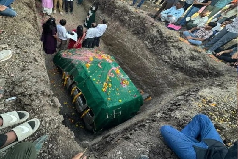 अभी तक आपने किसी साधु-संत के समाधि की बात सुनी होगी, लेकिन गुजरात में सौराष्ट्र इलाके के अमरेली के एक गांव में समाधि का एक अनोखा मामला सामने आया है। यहां पर एक किसान संजय पोलरा ने गुरुवार को अपनी लकी कार को समाधि दे दी। इस अवसर पर उन्होंने अपने सगे-संबंधियों व गांव के 1500 लोगों को बुलाया और उन्हें दावत भी दी। कार को समाधि देते देखने के लिए आस-पास के लोग भी बड़ी संख्या में जुटे।