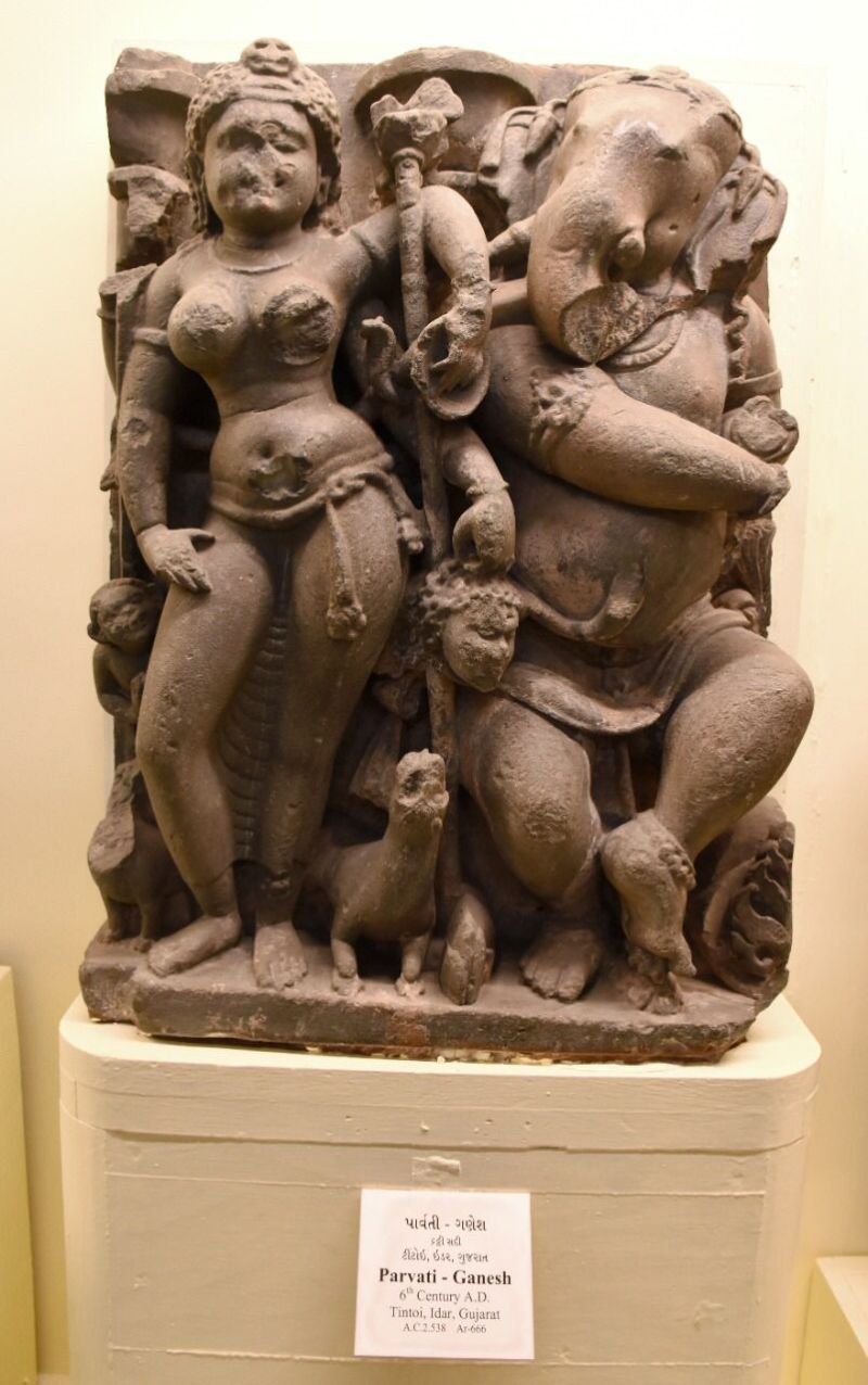 म्यूजियम के अंदर मौजूद छोटी-बड़ी चार प्रतिमाओं में से एक बहुत ही अद्भुत मूर्ति है। सभी मूर्तियों के सूढ़ बाई ओर मूड़ी है, जबकि एक प्रतिमा की सूढ दाहीने ओर है। यह सूढ़ भग्न अवस्था में है। लेकिन, इसे प्रणव मुद्रा में होने का अनुमान लगाया जा सकता है। सूढ़ के आकार से ओमकार बनता है। माता पार्वती के साथ बाल गणेश की काले पत्थर की छठी सदी की एक सुंदर प्रतिमा यहां रखी गई है।