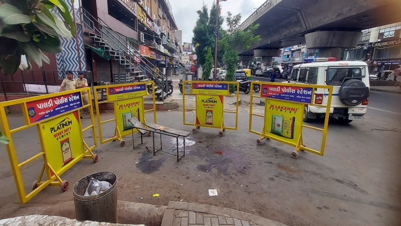 अहमदाबाद शहर के पालडी थाना क्षेत्र में हत्या होने पर घटनास्थल को जांच के लिए पुलिस ने किया कॉर्डन।