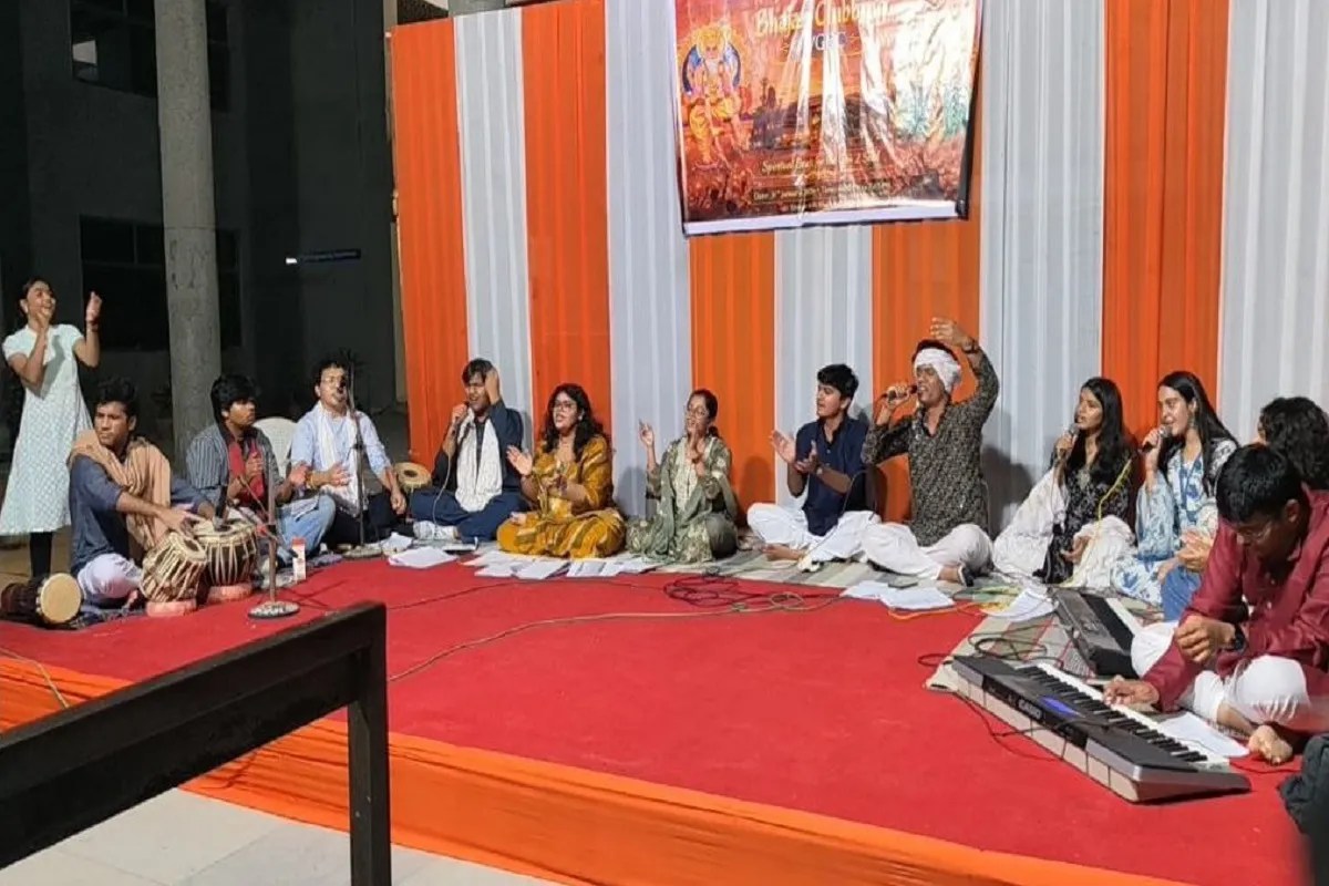 Ahmedabad. शहर के चांदखेडा क्षेत्र स्थित विश्वकर्मा गवर्नमेंट इंजीनियरिंग कॉलेज (वीजीईसी) में हाल ही में भजन क्लबिंग कार्यक्रम हुआ, जिसमें जेन-जी (युवा) भक्ति के रंग में रंगे नजर आए। दिलचस्प बात यह है कि कॉलेज के विद्यार्थियों की ओर से ही इसका आयोजन किया गया था। एम ब्लॉक में हुए अपनी तरह के इस पहले भजन क्लबिंग कार्यक्रम में प्राचार्य वी.एस. पुराणी और अन्य प्राध्यापक भी मौजूद रहे।