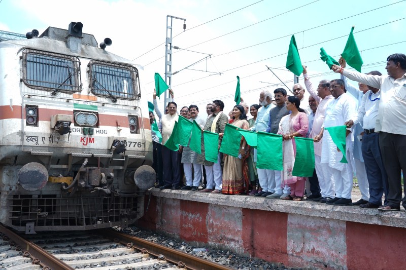 अहमदाबाद. मेहसाणा. उंझा, आसपास के यात्रियों को मैसूरु, बीकानेर तक सीधा रेल संपर्क मिला है।उंझा रेलवे स्टेशन पर अजमेर-मैसूरु द्वि साप्ताहिक एक्सप्रेस ट्रेन (नं. 16209/16210) एवं लालगढ़-दादर राणकपुर दैनिक एक्सप्रेस ट्रेन (नं. 14707/14708) के ठहराव का शुभारंभ लोकसभा सांसद हरिभाई पटेल और राज्यसभा सांसद मयंक नायक ने हरी झंडी दिखाकर किया।