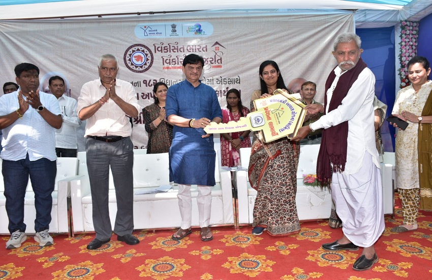 वडोदरा. प्रधानमंत्री आवास योजना के तहत शनिवार को जिले की 7 तहसीलों के 352 गांवों में निर्मित 1495 आवासों का लोकार्पण किया गया।बनासकांठा जिले के डीसा से प्रधानमंत्री नरेंद्र मोदी की वर्चुअल उपस्थिति में आवासों का ई-लोकार्पण किया गया। साथ ही लाभार्थियों काे यह आवास प्रदान किए गए।