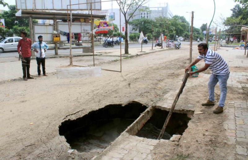 वडोदरा. शहर के अकोटा क्षेत्र में सयाजीनगर गृह के पास शुक्रवार सुबह बड़ा और गहरा गड्ढा होने से स्थानीय लोगों को परेशानियों का सामना करना पड़ा। इस स्थल से नजदीक में स्कूल होने के कारण विद्यार्थी परेशान दिखे।