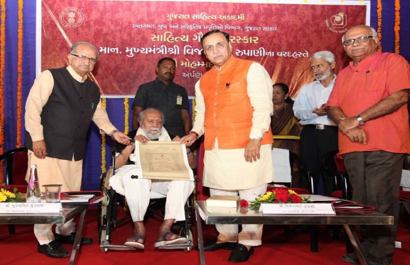 गांधीनगर. गुजराती भाषा के मूर्धन्य साहित्यकार मोहम्मद मांकड़ को गुजरात साहित्य अकादमी की ओर से वर्ष 2018 का साहित्य गौरव पुरस्कार से सम्मानित किया गया। मुख्यमंत्री विजय रूपाणी ने 90 वर्षीय मांकड के गांधीनगर स्थित घर जाकर उन्हें इस पुरस्कार से सम्मानित किया। इस अवसर पर उन्होंने गुजराती साहित्य की धरोहर को भावी पीढ़ी तक संवर्धित करने तथा इसके दायरे व प्रसार को और भी बढ़ाने की हिमायत की है।