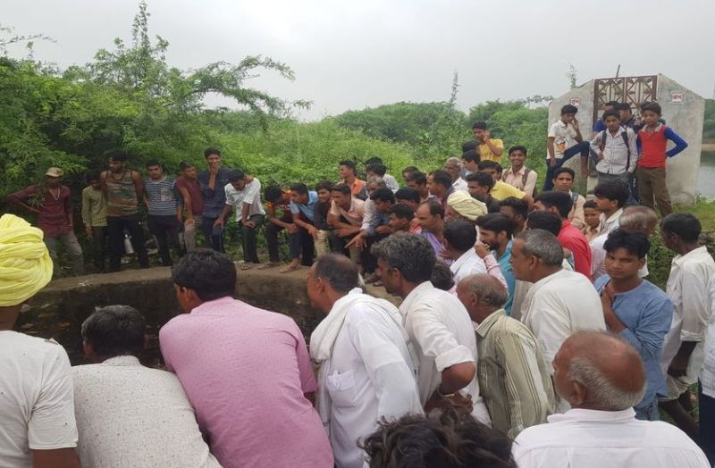 जेठाना गांव में कुएं में शव की सूचना पर मौके पर जमा ग्रामीण।