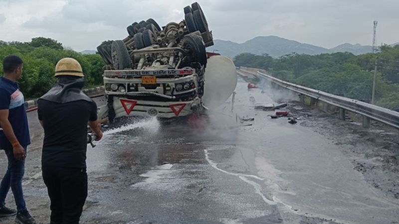 एसिड से भरा टैंकर पलटा: फोटो पत्रिका