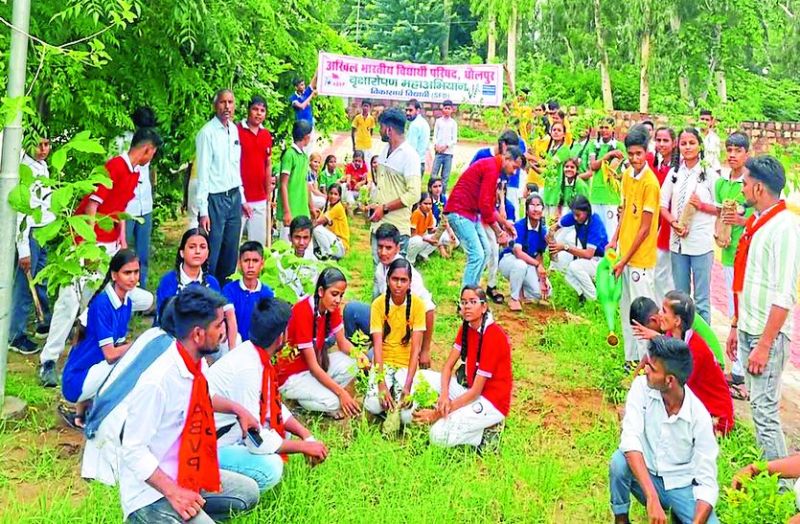 एबीवीपी ने दस मिनट में लगाए 1001 पौधे, बनाई मानव शृंखला