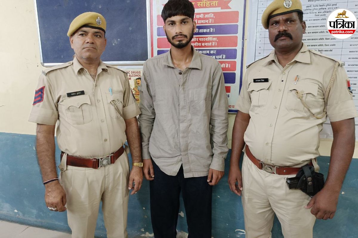 सिविल लाइंस थाना पुलिस की गिरफ्त में आया सत्यम जांगिड़। Photo- Patrika