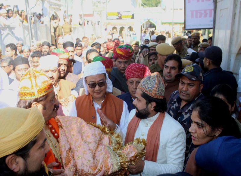 प्रधानमंत्री नरेंद्र मोदी की ओर से दरगाह में चादर पेश की गई। संसदीय कार्य और अल्पसंख्यक मंत्री किरण रिजिजू ने चादर पेश की। उन्होंने दरगाह के महफिल खाना में प्रधानमंत्री मोदी का संदेश भी पढ़ा। सैयद अफशान और सैयद सलमान चिश्ती ने हस्तनिर्मित तस्वीर, सूफी आर्ट पेंटिंग भेंट की। केंद्रीय कृषि राज्यमंत्री भागीरथ चौधरी, जल संसाधन मंत्री सुरेश सिंह रावत आदि मौजूद रहे।
