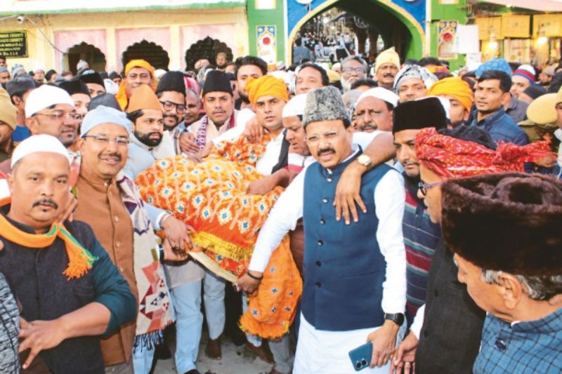 ख्वाजा साहब की दरगाह में मुख्यमंत्री भजनलाल शर्मा की ओर से चादर पेश करने जाते भाजपा पदाधिकारी